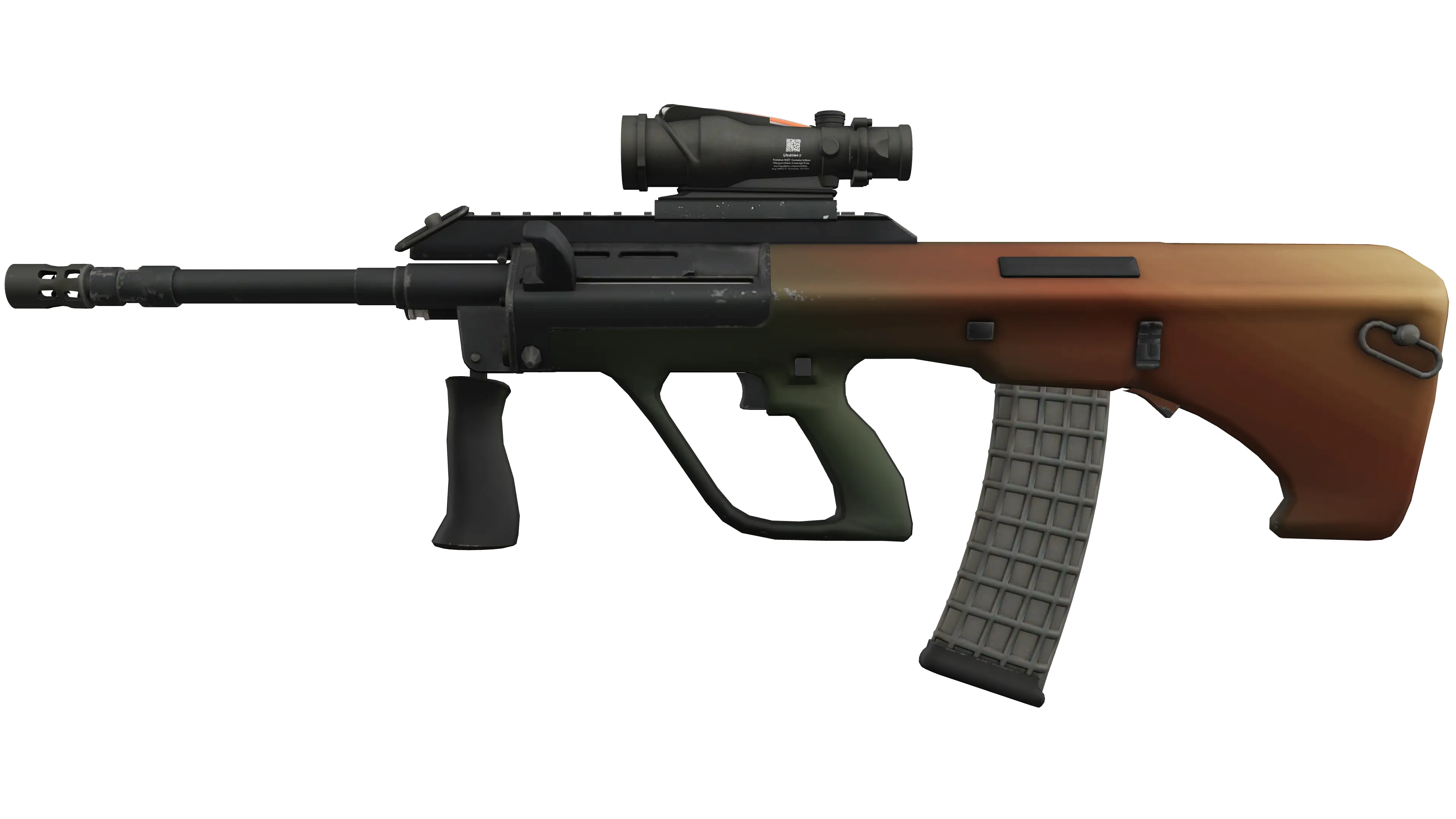 Powerful and accurate, the AUG scoped assault rifle compensates for its long reload times with low spread and a high rate of fire
