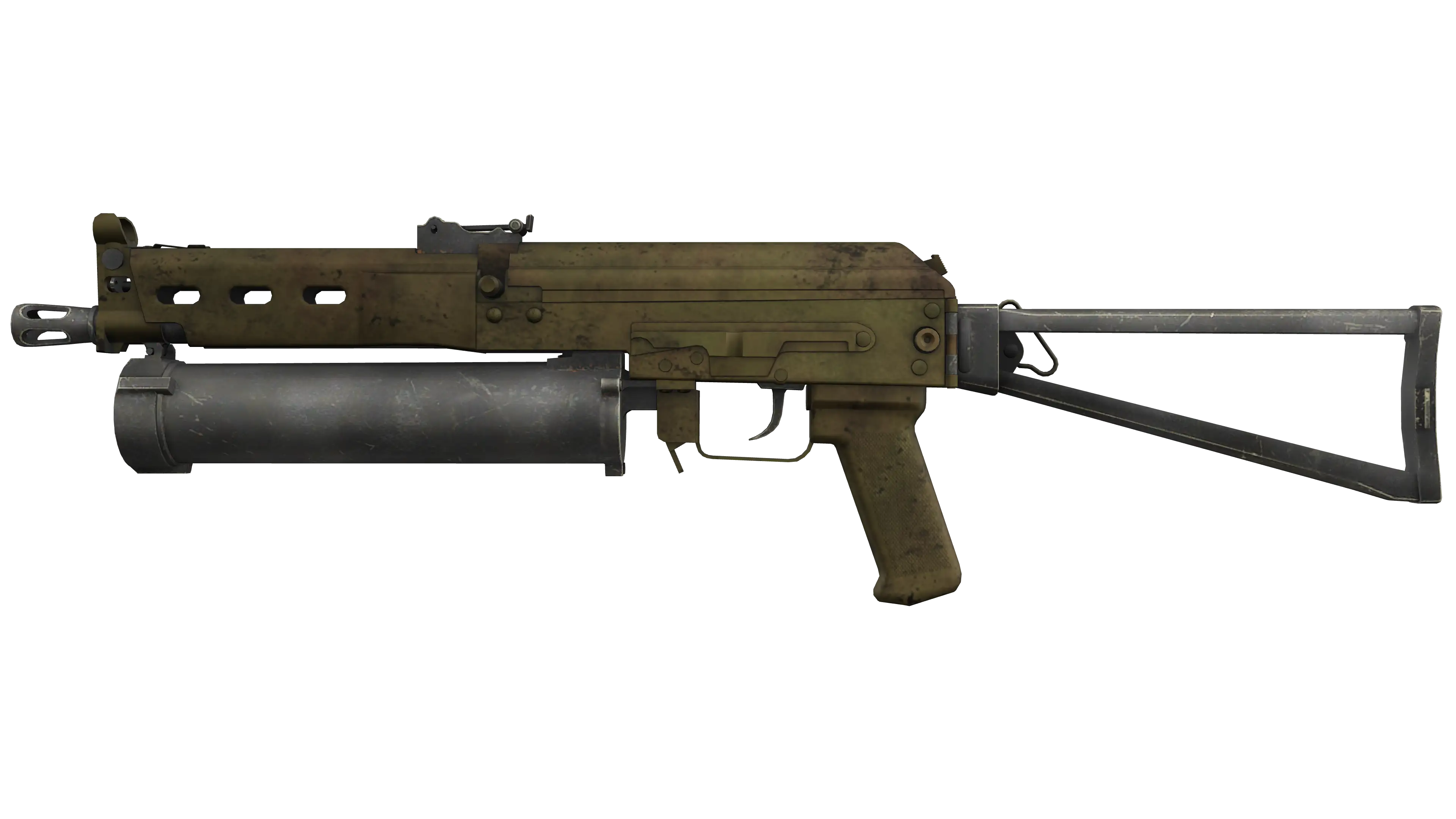 The Bizon SMG is low-damage, but offers a uniquely designed high-capacity drum magazine that reloads quickly
