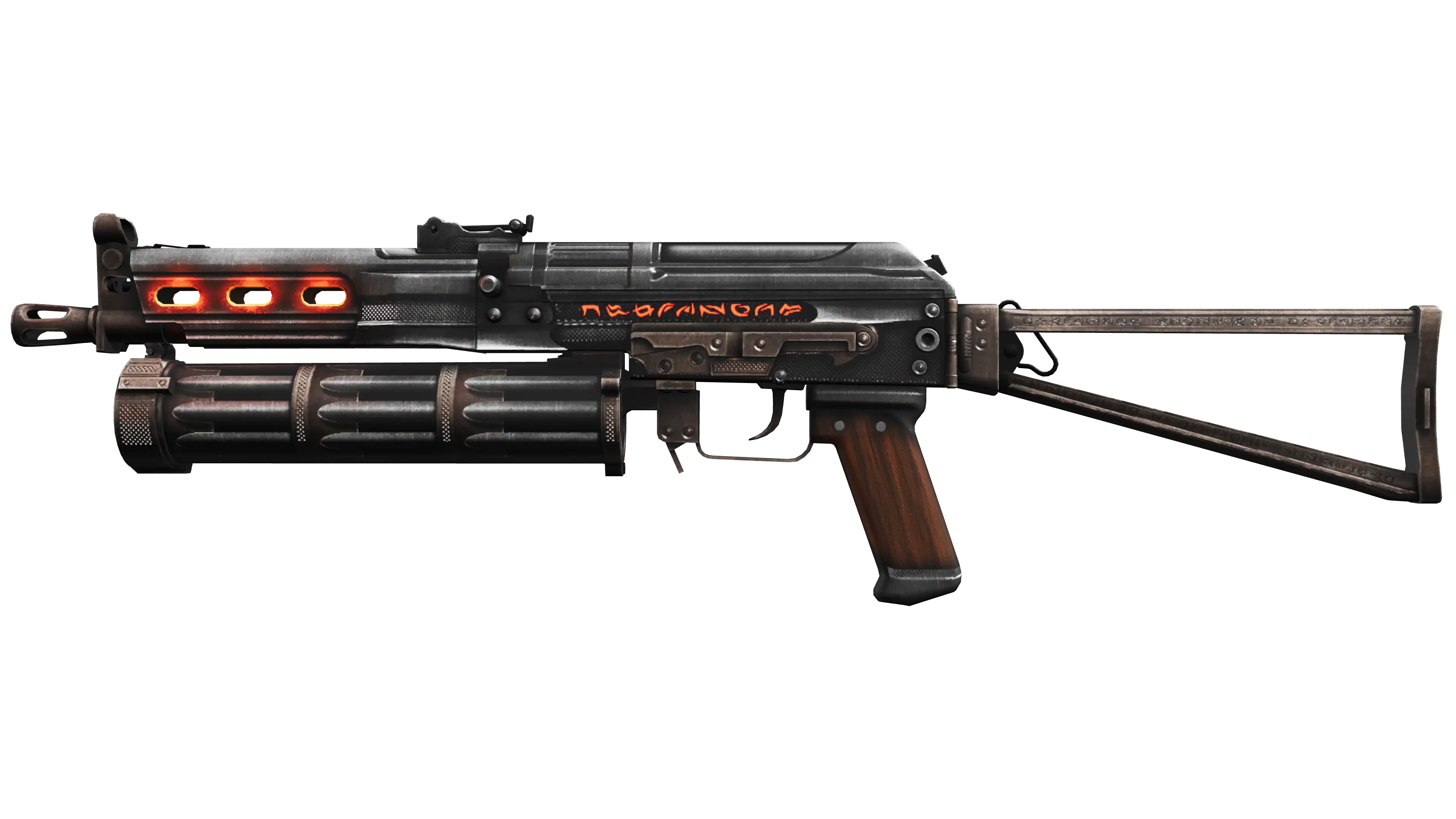 The Bizon SMG is low-damage, but offers a uniquely designed high-capacity drum magazine that reloads quickly