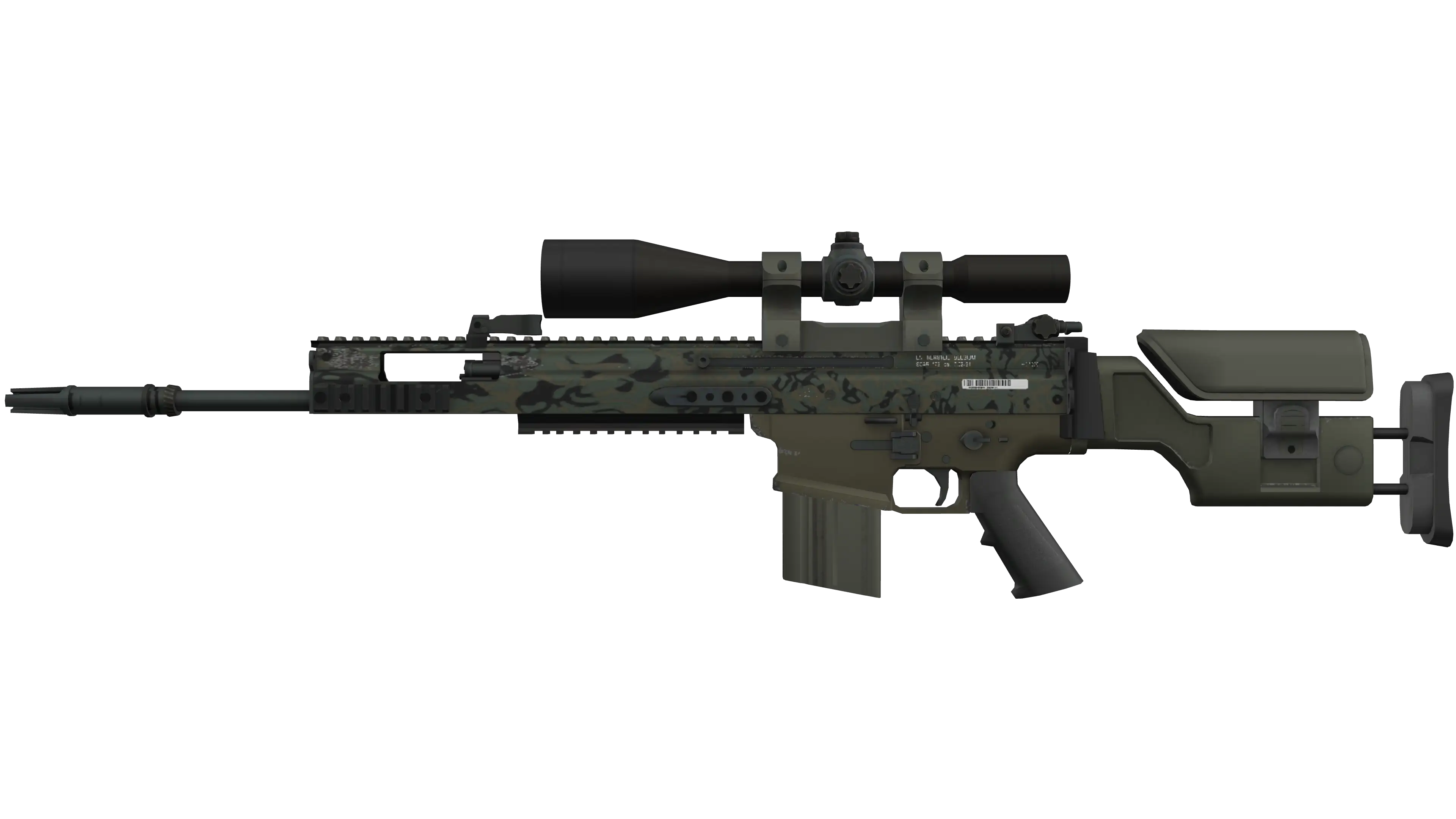 The SCAR-20 is a semi-automatic sniper rifle that trades a high rate of fire and powerful long-distance damage for sluggish movement speed and big price tag