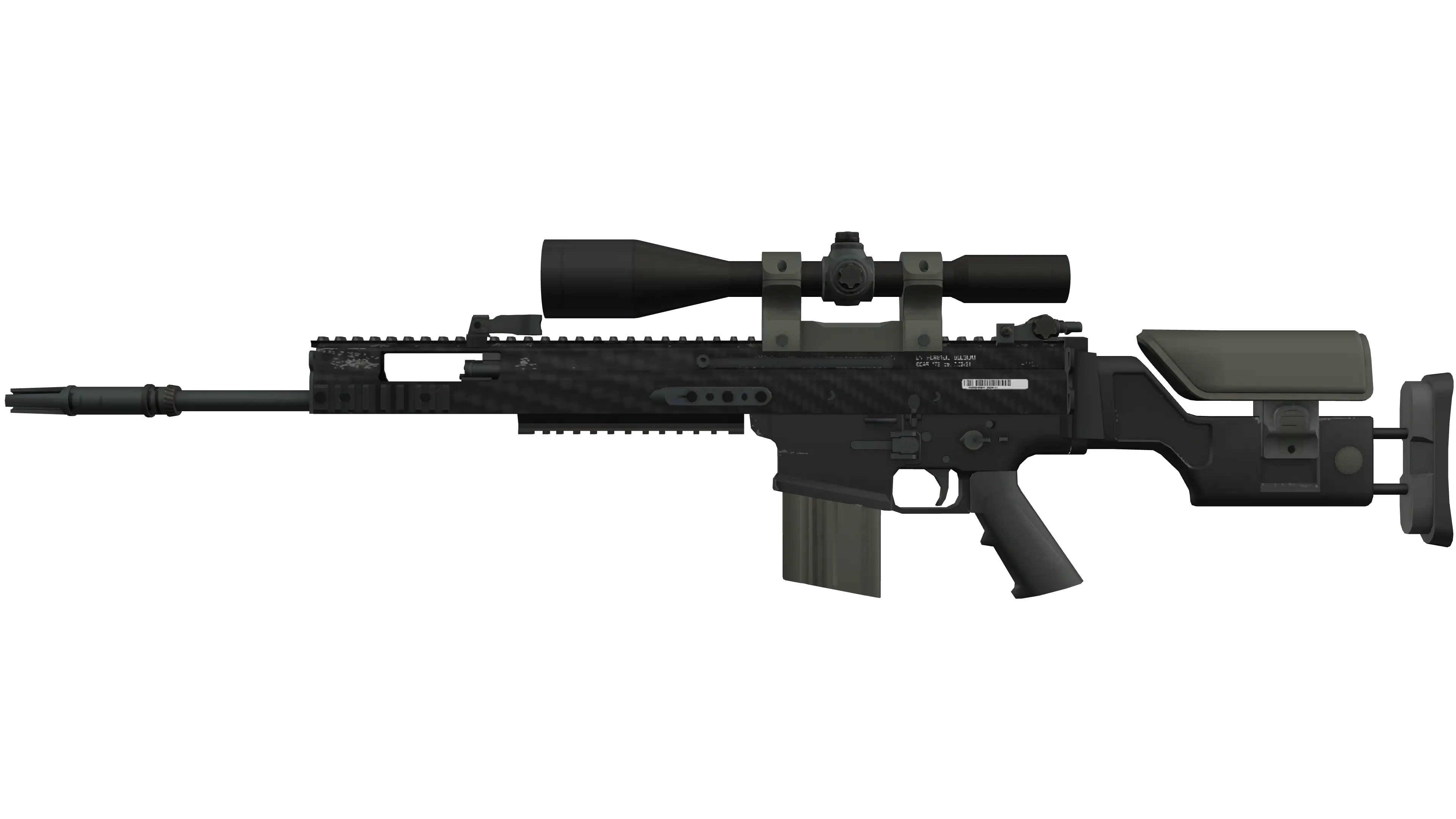 The SCAR-20 is a semi-automatic sniper rifle that trades a high rate of fire and powerful long-distance damage for sluggish movement speed and big price tag