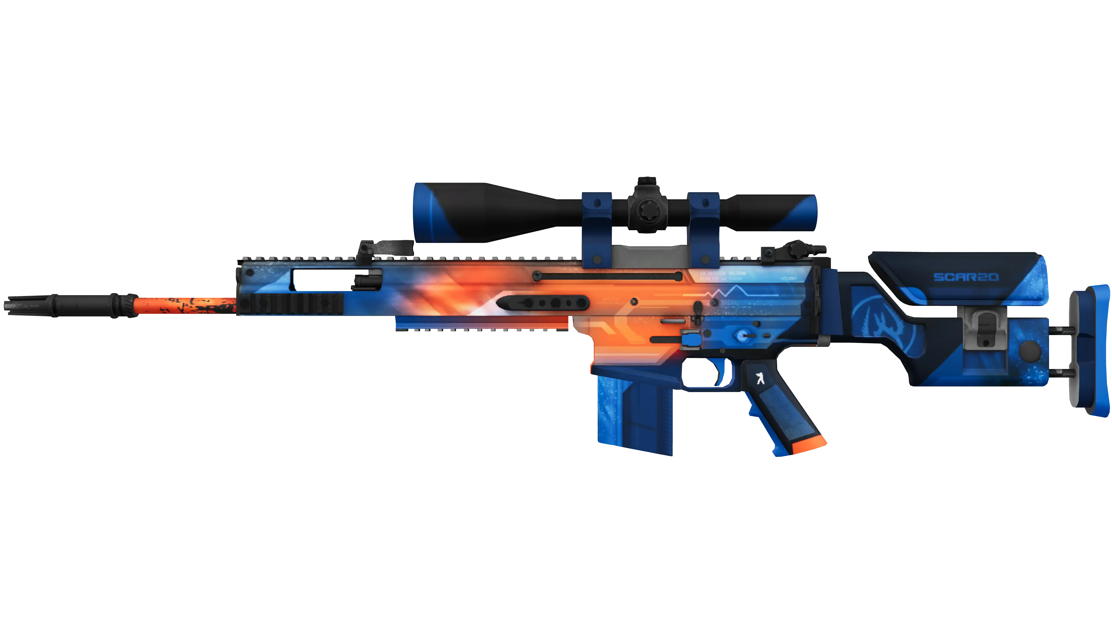 The SCAR-20 is a semi-automatic sniper rifle that trades a high rate of fire and powerful long-distance damage for sluggish movement speed and big price tag