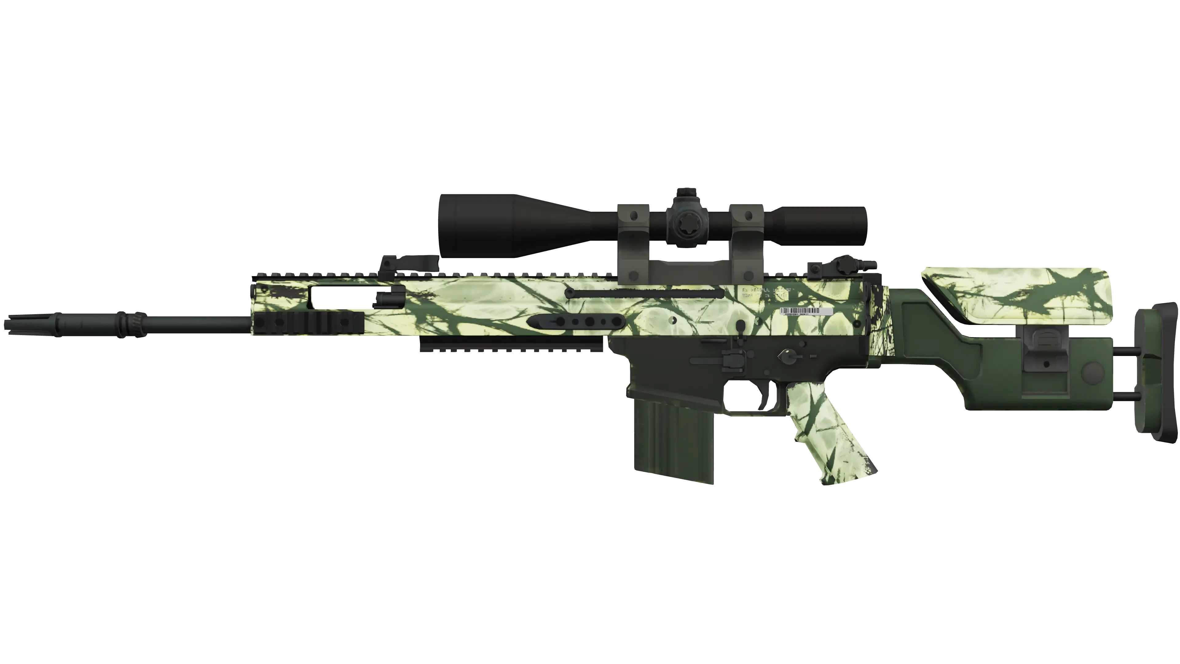 The SCAR-20 is a semi-automatic sniper rifle that trades a high rate of fire and powerful long-distance damage for sluggish movement speed and big price tag