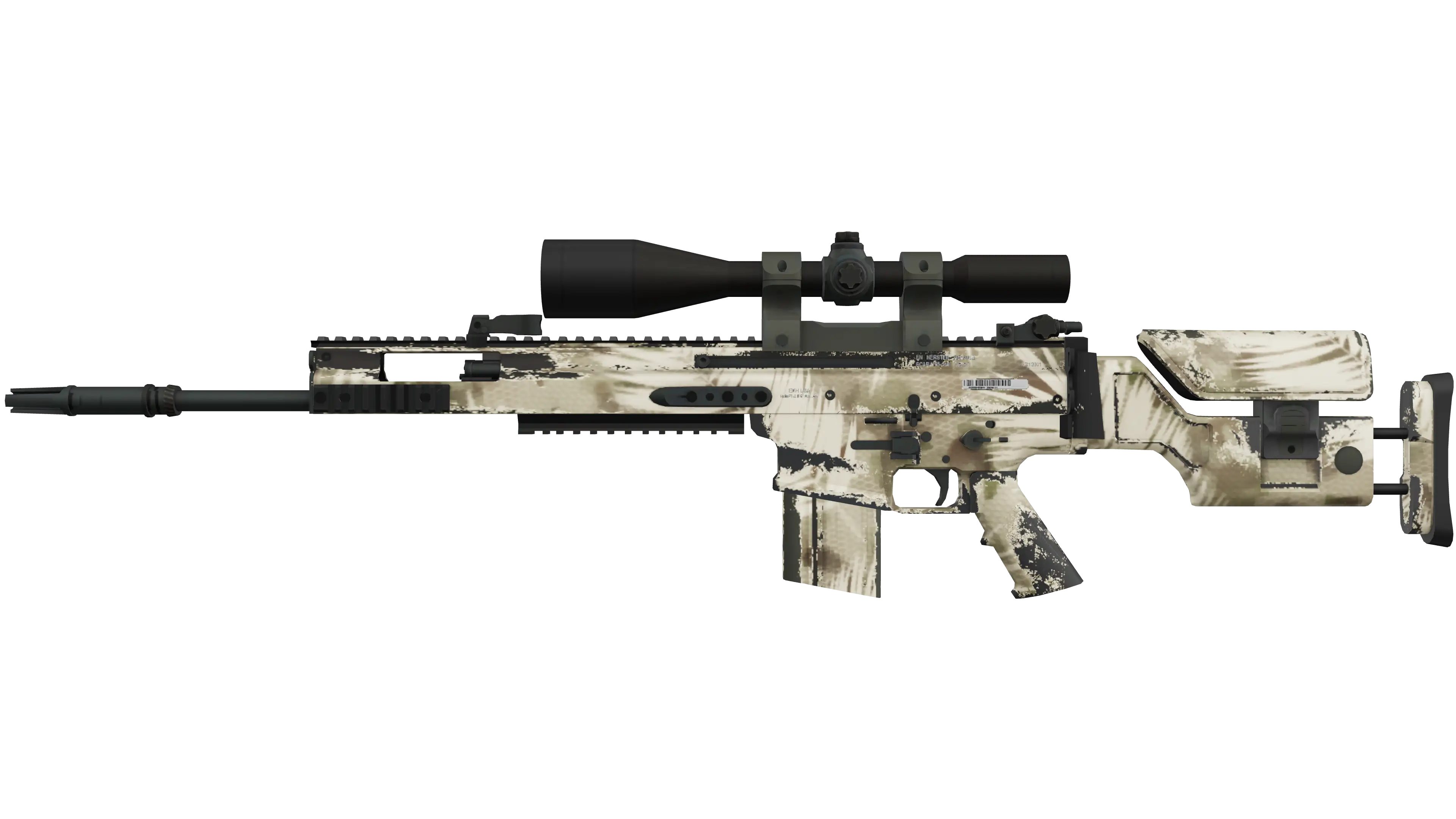 The SCAR-20 is a semi-automatic sniper rifle that trades a high rate of fire and powerful long-distance damage for sluggish movement speed and big price tag