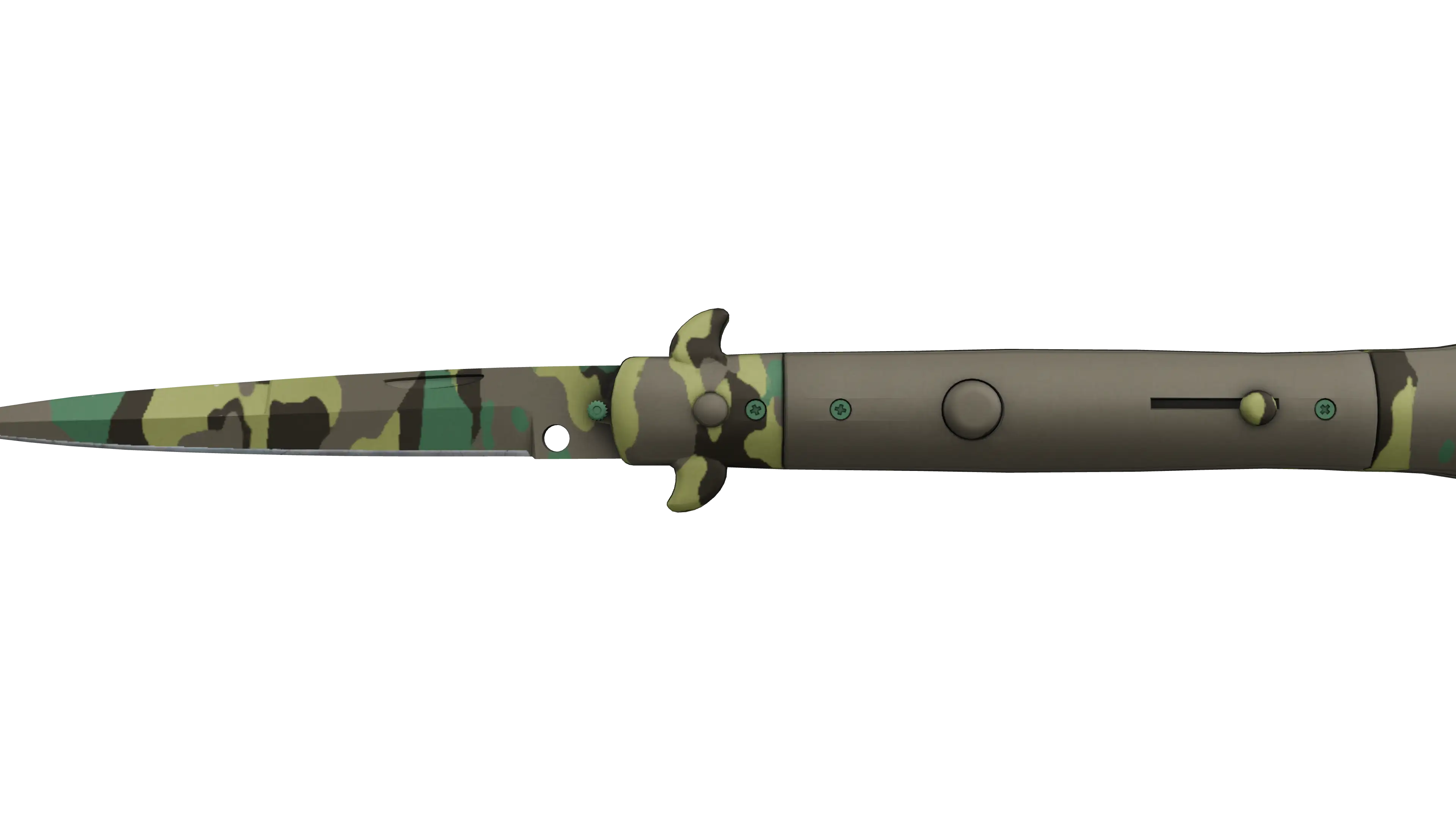 Historically a focal point of contention and even regulation, this Italian-style stiletto switchblade knife features a spring-loaded blade that can be deployed almost instantly with the push of a release catch