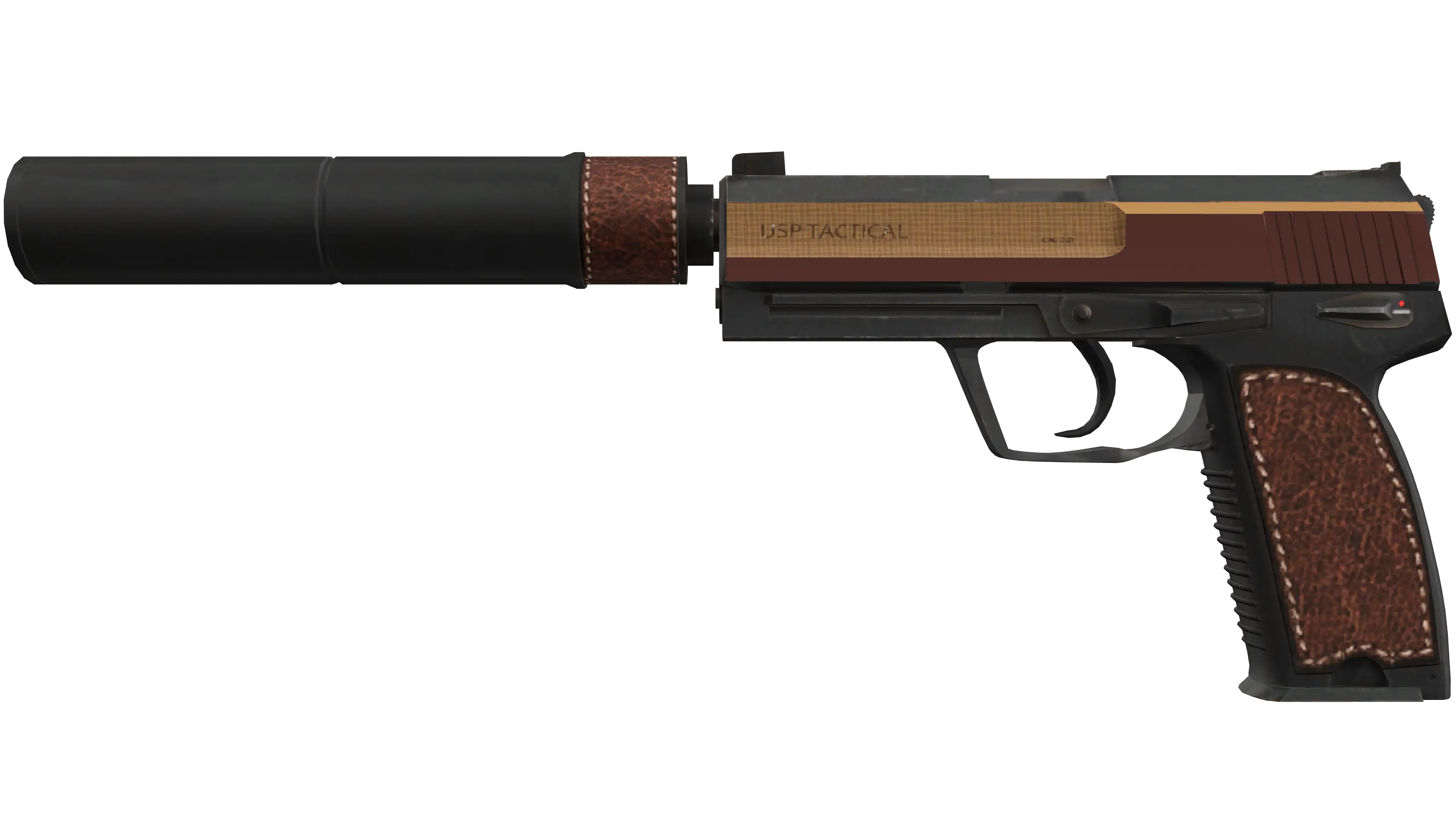 A fan favorite from Counter-Strike Source, the Silenced USP Pistol has a detachable silencer that gives shots less recoil while suppressing attention-getting noise